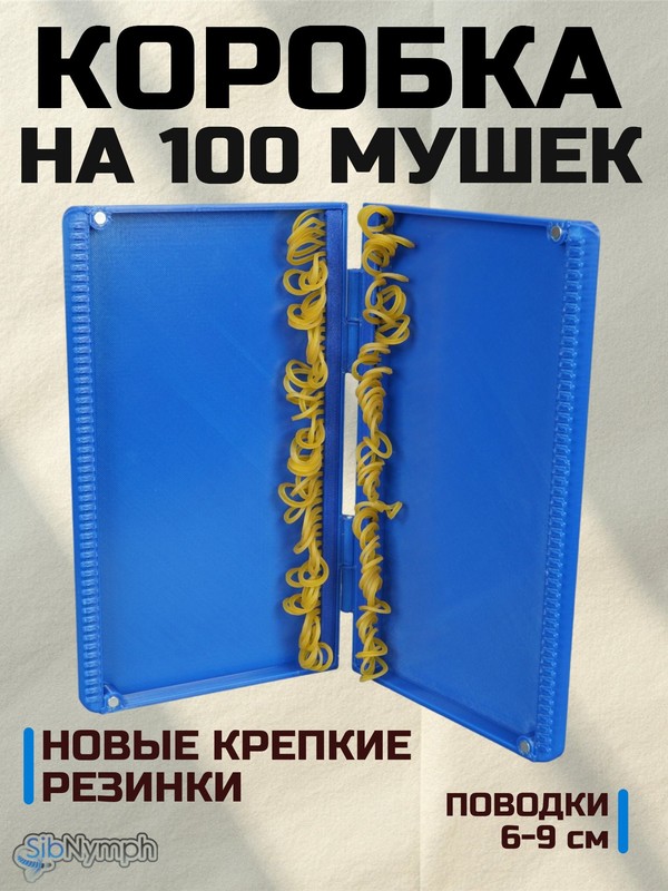 Универсальная удобная коробка для мушек с готовыми поводками на 100 мест. Размер коробки удобно помещается в большой карман или сумку.