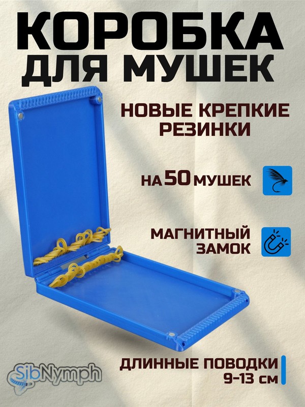Универсальная коробка для мушек с поводками на 50 мест. Отличный вариант для ходовой рыбалки. Размер коробки удобно помещается в кармане куртки или поясной сумки.